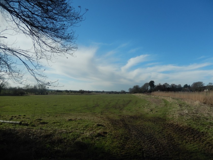 We were on the right of way walking eastwards and soon to join the Middle Yeo river or rhyne, when I aggravated farmer approached us to ask if we’d seen a grey lurcher that had apparently been disturbing his sheep. This was in lambing season; a time where farmer’s may be extra vigilant. While I could sympathise with his frustration, I didn’t agree with his intentions to shoot or run the dog over, if he could find it… I’m not entirely sure of what the law says on this.