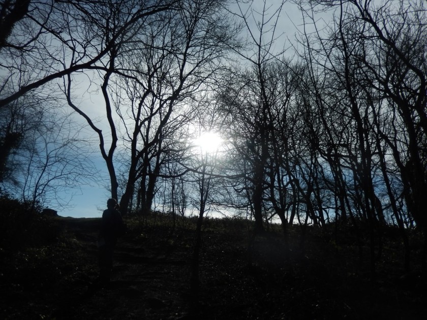 Taking a left turning near the top, we ascended through a small patch of woodland to reach the ramparts of Cadbury Camp hill fort.