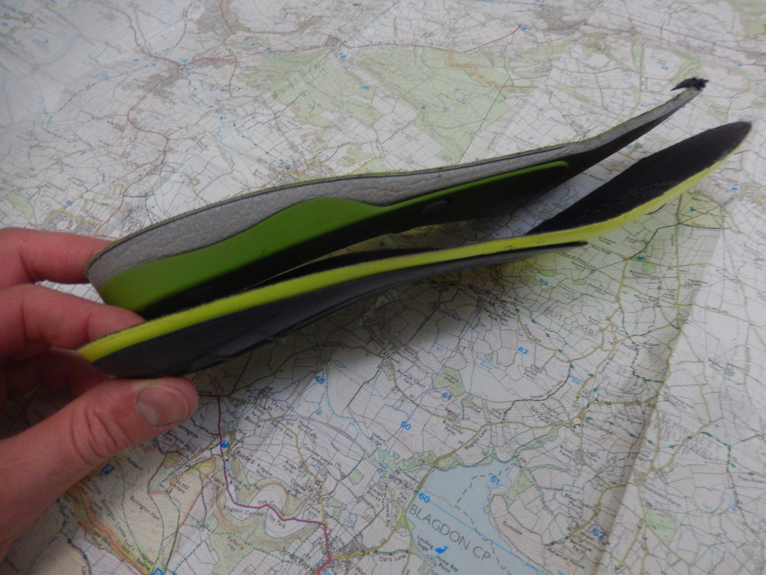 At the top, you can see the original removable insole, of which there isn’t really much I can say. Blue is Berghaus’ own volume adjuster (3mm) and at the bottom, their Ortholite insole (5mm). While the volume adjuster did seem to help, I still found that neither insole was offering me the support or comfort I desired.