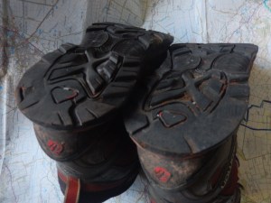 I bought this boots in May 2015 and they’ve become the most comfortable walking boots I have owned. I’ve probably walked the best part of eight-hundred miles in them, if not more and the state of the tread on the soles should illustrate that.
