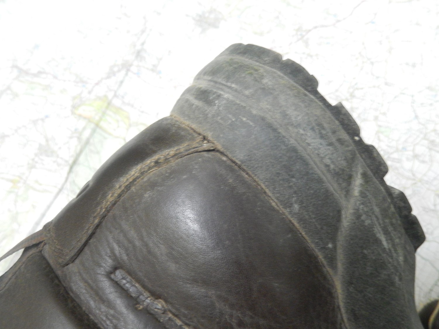 They’re made from almost a single piece of leather – what I was keen to avoid was any pair of boots with stitching close to where the toes bend (past experience has taught me that this is where my boots most commonly fail). Underneath, the tread on the soles is in very good knick.