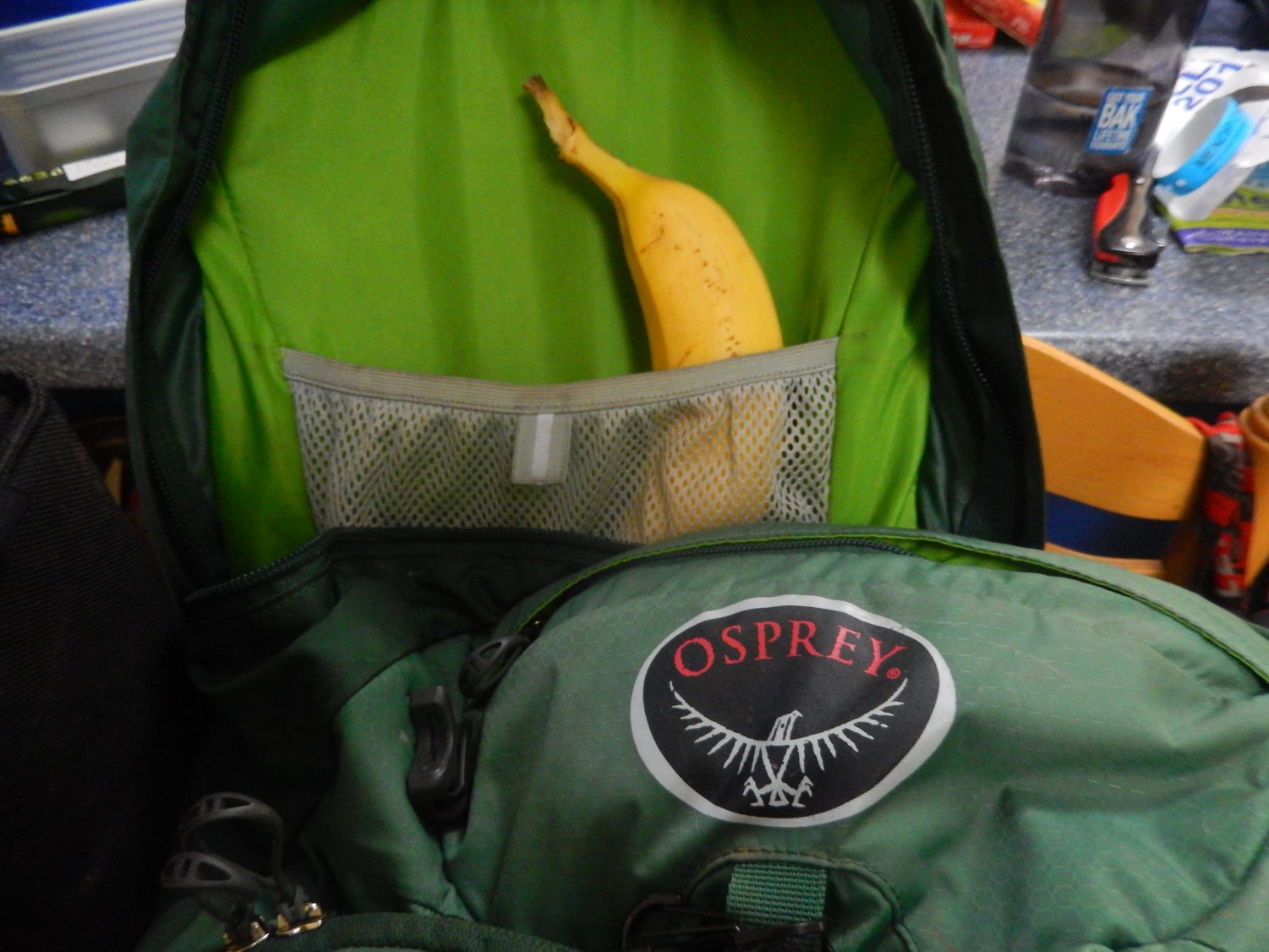 Rest assured, my banana can sit in side the mesh pocket to the rear of my pack, above the new box (without being squashed) and where it’s easier to grab [although, this didn’t prevent me from forgetting the fruit for Sundays’ thirty-mile trek].