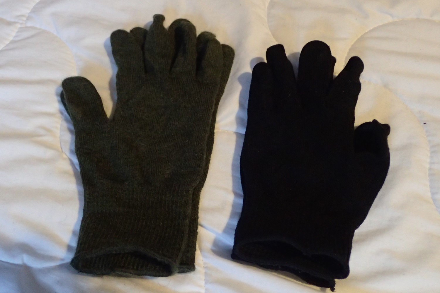 Another one of Andy’s suggestions (always listen to a skilled Mountain Leader) was to wear a liner glove underneath the Sealskinz. On the left in green, we have a pair made from merino wool (EDZ Merino Wool Thermal) and, on the right in black, we have a pair made mostly from silk (EDZ Silk Liner).
