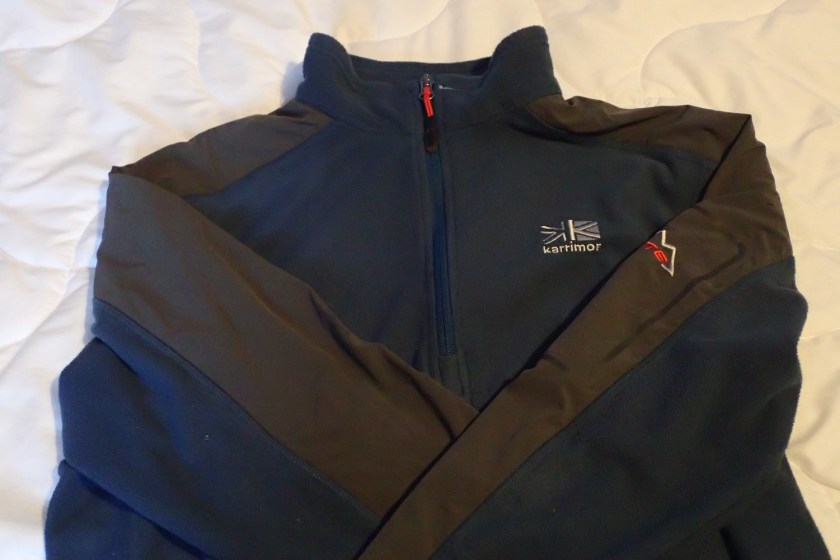 Bearing in mind that I don’t want to be wearing a fleece over wool, I usually wear a long-sleeved IsoCool top ,again, from Mountain Warehouse. On top of this, I can wearing a waterproof jacket and that’ll certainly keep me warm while walking and climbing hills.