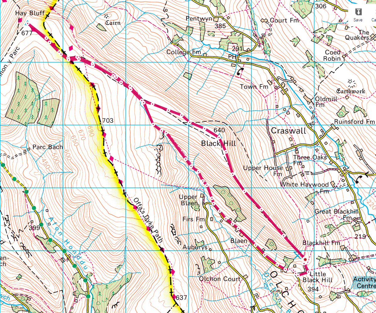 Even in poor visibility, as we rounded the head of the valley, I knew there was a choice to make. Following the intended route back along Offa’s Dyke was out of the question… We were only a few hundred metres from the Hay Bluff trig (677m – the highest point on this route), while the sensible option would’ve been to turn left and duck immediately down in to the shelter of the valley…