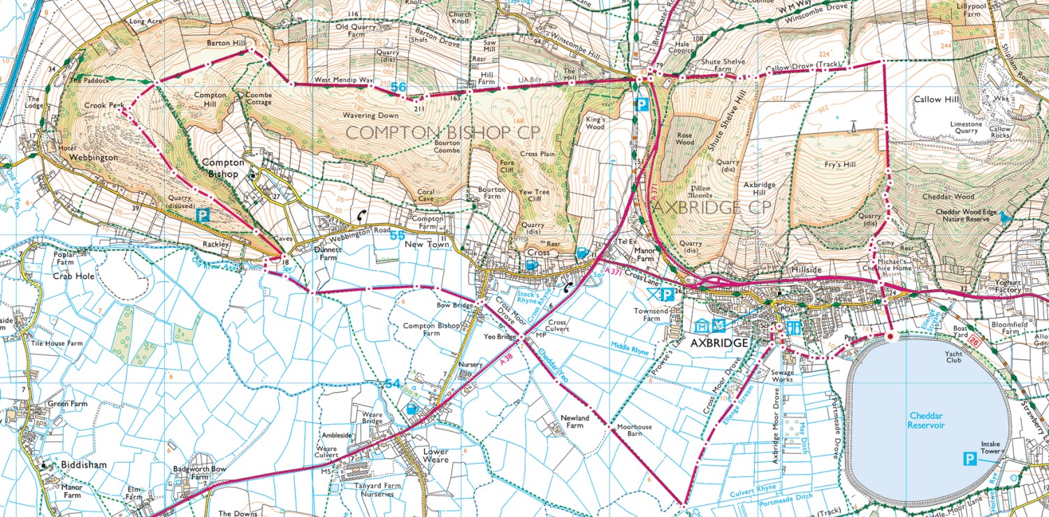 Parallel to this (and to the north) is Winscombe Drove; a well-walked route that can be wet and muddy on a hot summer’s day, that also bears the West Mendip Way.