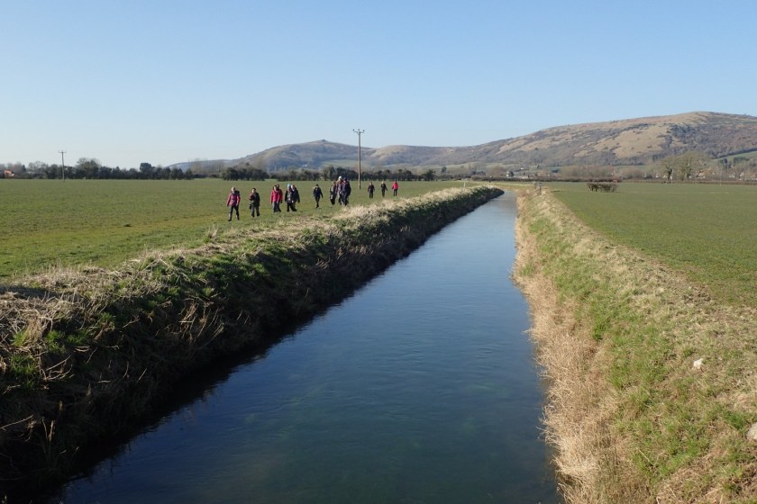 We’d return to Axbridge through Cross and over the A38 once more, with the Cheddar Yeo river as our guide. I was slightly too confident in allowing people to walk on ahead of me… A gate that had been locked on my pre-walk was left open on this occasion. But the herd soon retreated at the sight of a impassable point beyond (a local dog walker, passing at the same moment, made the “herd of sheep” reference).