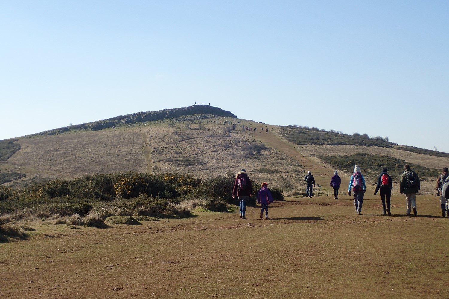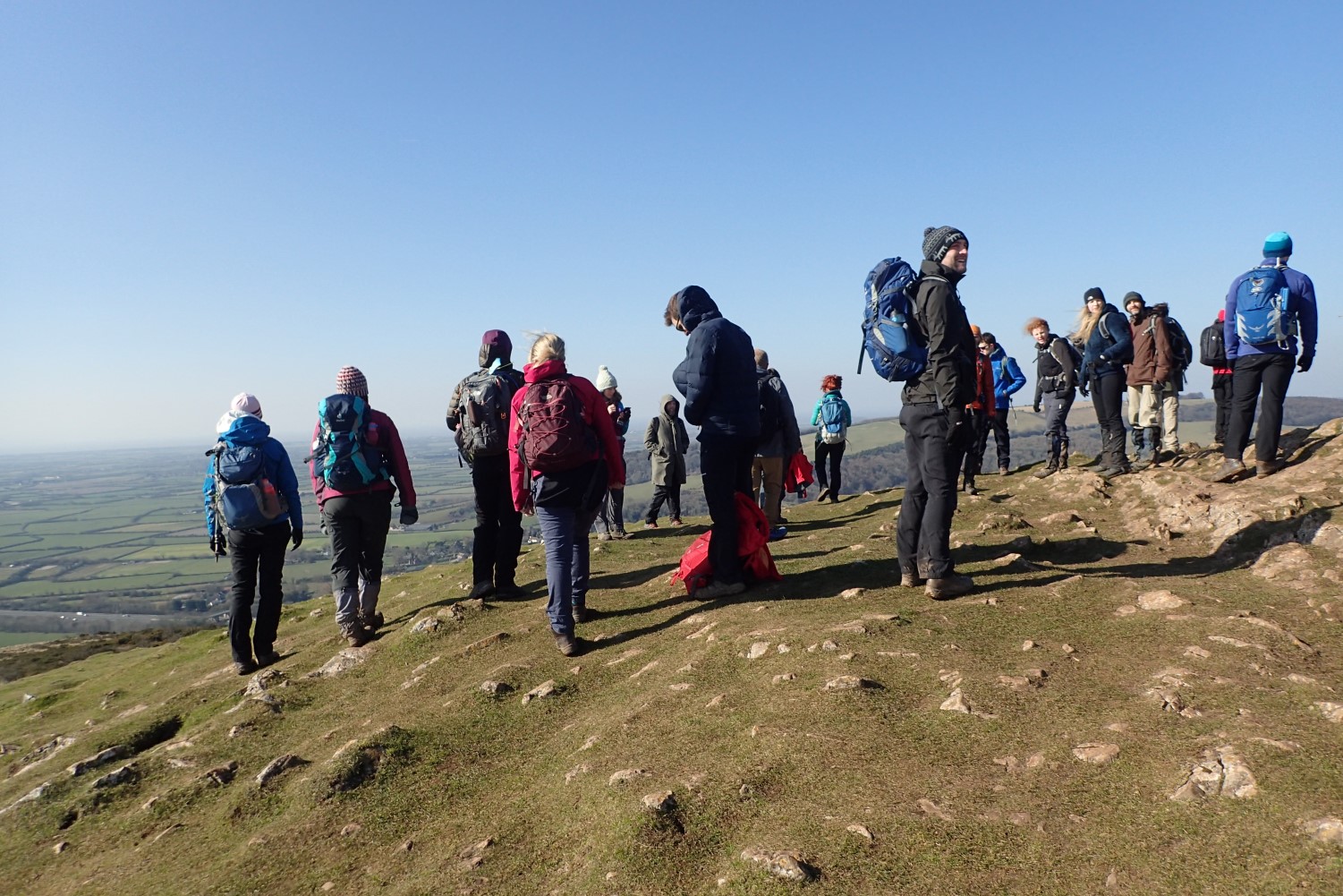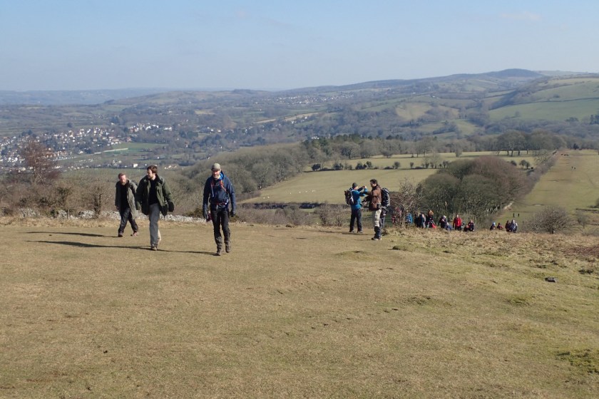 Beyond Barton Hill, we would leave the West Mendip Way to climb Crook Peak; our final summit of the day. With barely a cloud in the sky, many others were out. To give you an indication: those people coming down from the peak were not part of our party of twenty-five!