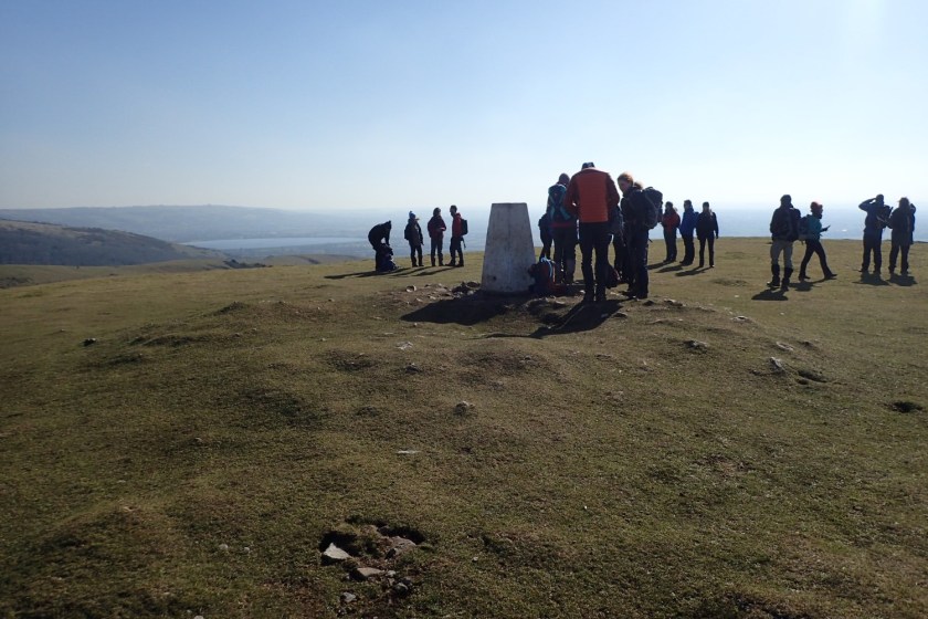 We were rewarded with a rather infamous trig pillar and views back to the reservoir from which we’d started. Standing just over two-hundred metres above sea level, we were very exposed to the wintry breeze. I believe it was dry and easterly… This was several days before the UK’s first encounter with the ‘Beast from the East’.