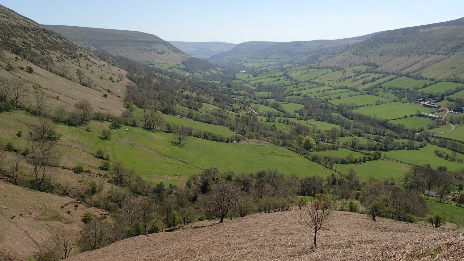 From the Blaen-Y-Cwm car park within Mynydd Du Forest, I climbed up to cross the cairn-laded ridge of Chwarel Y Fan, to descend in to the Vale of Ewyas for the very first time.