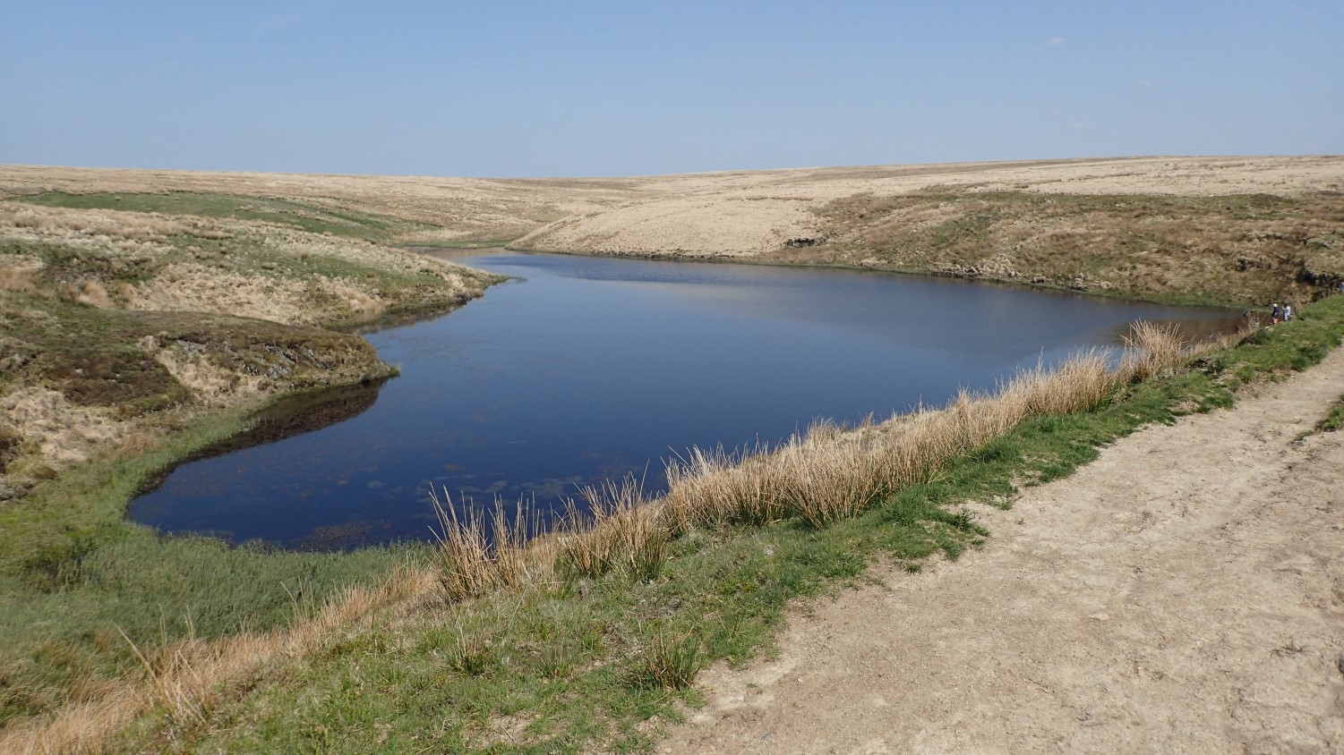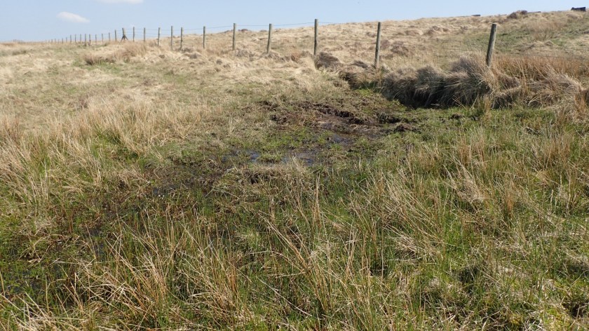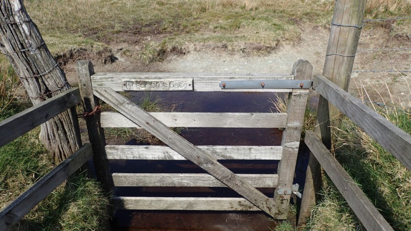 There was an opportunity for me to bag a second trig point of the day at Chains Barrow… Beyond the gate above, midges were all over the pool you can just see. But, even before that, the action of opening the gate was a challenge, as the “mud” beneath the water’s surface was up to my ankles before I’d walked too far. Then, there was the smell…