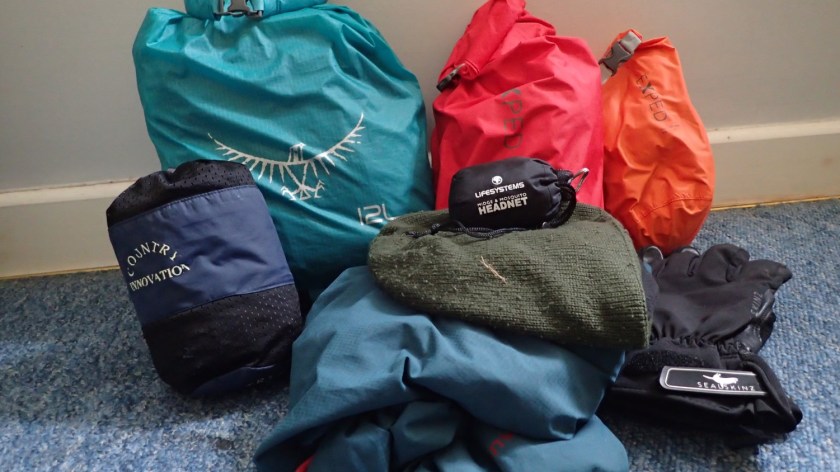 In the 8lt red bag I had four pairs of T-shirts, two spare pairs of socks and a clean pair of underwear for each day… I’ve been advised that ‘one spare set of clothes’ should be enough and so, I’m sure I can make a saving, here.