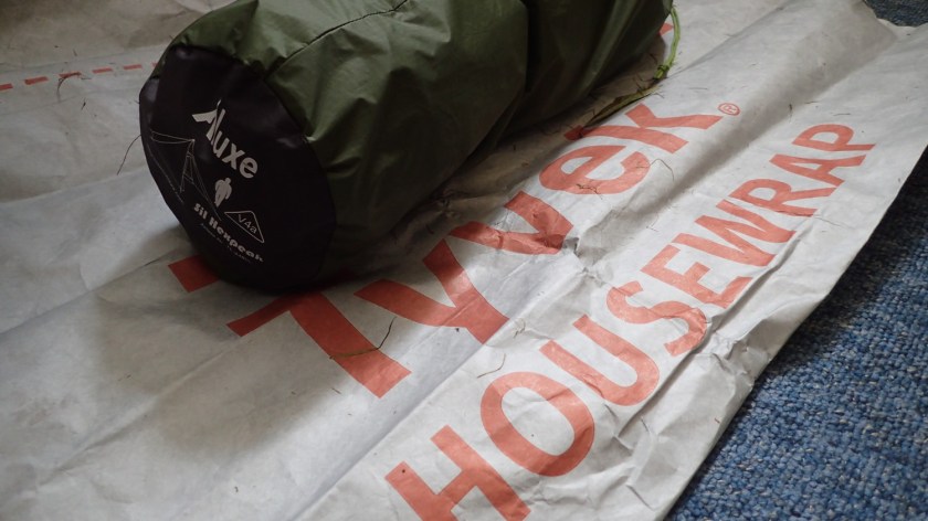 I recently added a Tyvek sheet (known as ‘Housewrap’ across the pond) to my arsenal. It’s a tip I picked up from YouTube and didn’t cost a lot on eBay. It’s just a sheet on which I can kneel inside the tent or lay my stuff out on when the ground is wet.