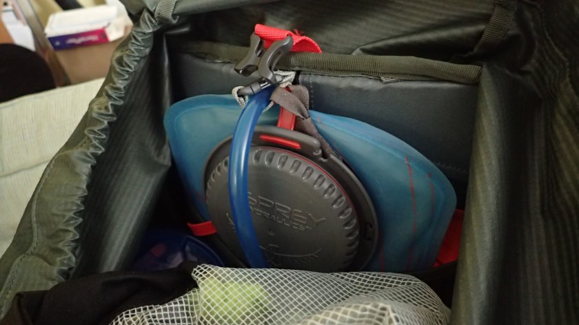 My hydration bladder is a 2.0lt Osprey Hydraulics model which I’ve had for a few years. It works just fine and offers a good capacity for a long day of hiking.