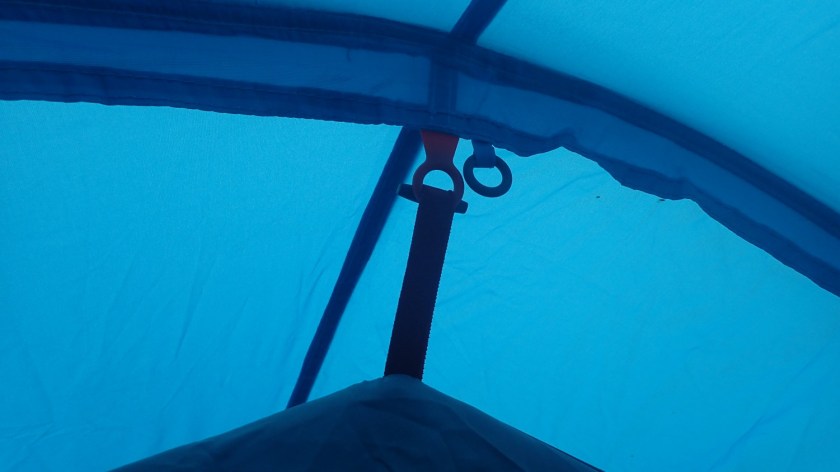 As I mentioned; with this design, the inner tent clips to the outer. There’s one loop at the top of the centre that doesn’t appear to be accounted for. I would like to have found a hook available for suspending a lantern, which would only work here if your light has a hook of its own.