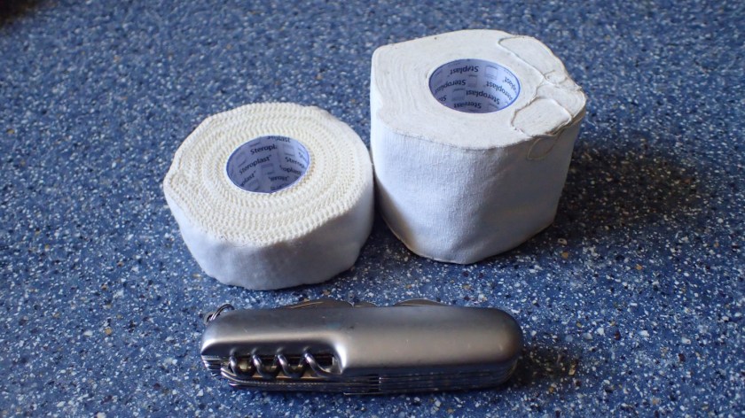 I like to think that much of this list is self-explanatory. Zinc-oxide tape is a great discovery and I’m currently the known hot-spots of my feet prior to a walk and it seems to be combatting the blisters.