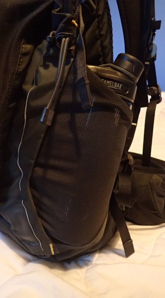 One of my favourite features – and, this is something I’d like to see more of – is that the hydration bladder pocket sits behind the back panel but outside of the main compartment. It is just enough for a water bladder and nothing more. I think this is ideal if you’re someone who’s likely to top up your bladder part-way through a hike.