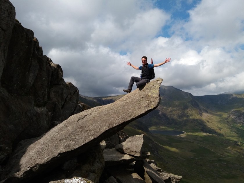 A solo walker from Leicester – who told me he’s done the Snowdon Horseshoe two weeks earlier and only started walking last year – caught up with us and I remember he carried on to follow a group of climbers up a route that deviated from our own. From this side, it didn’t look to bad. But, we’d later see and hear of how he regretted that decision and would require the help of able and full-kitted climbers to get down safely from the other side.
