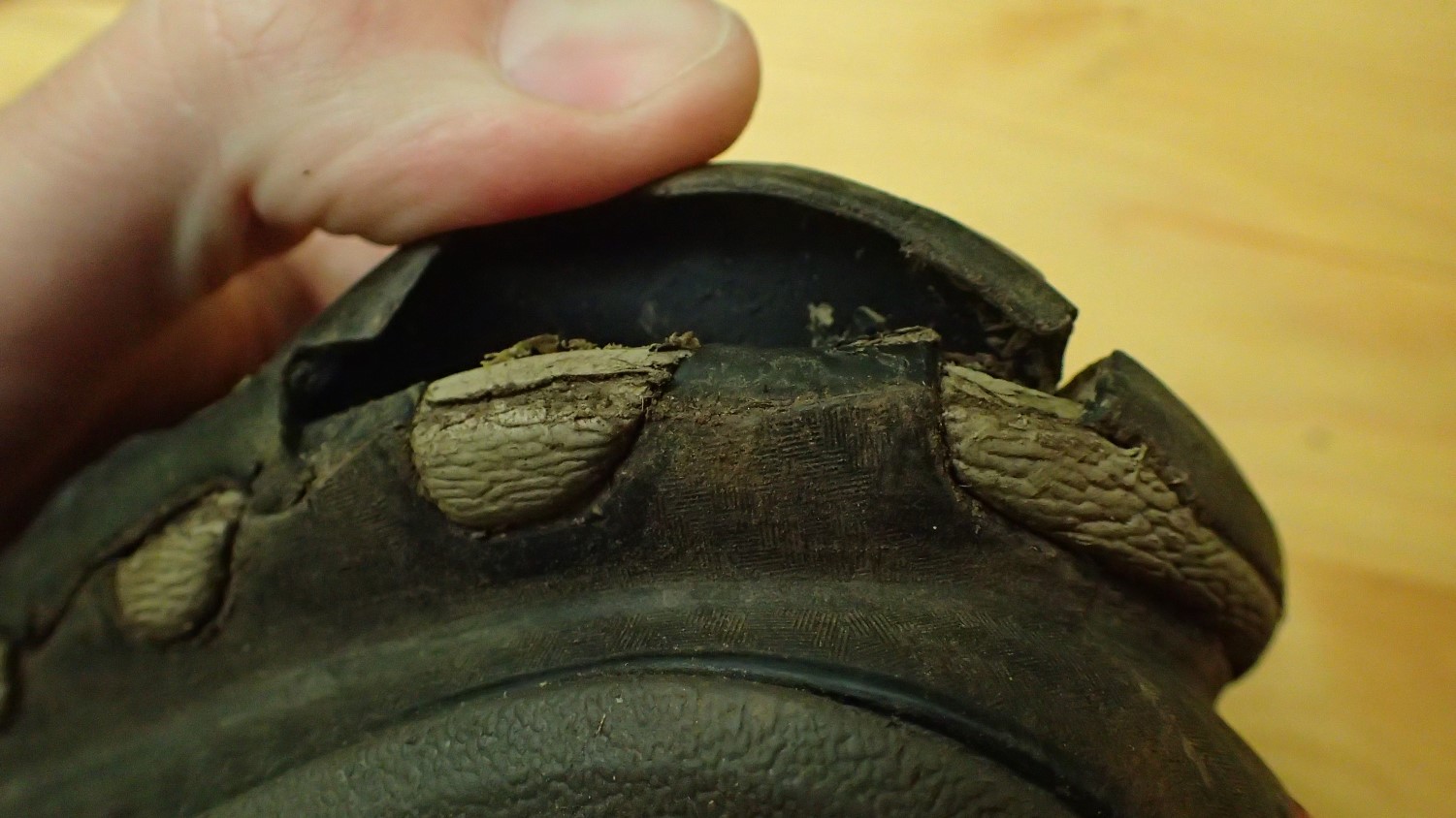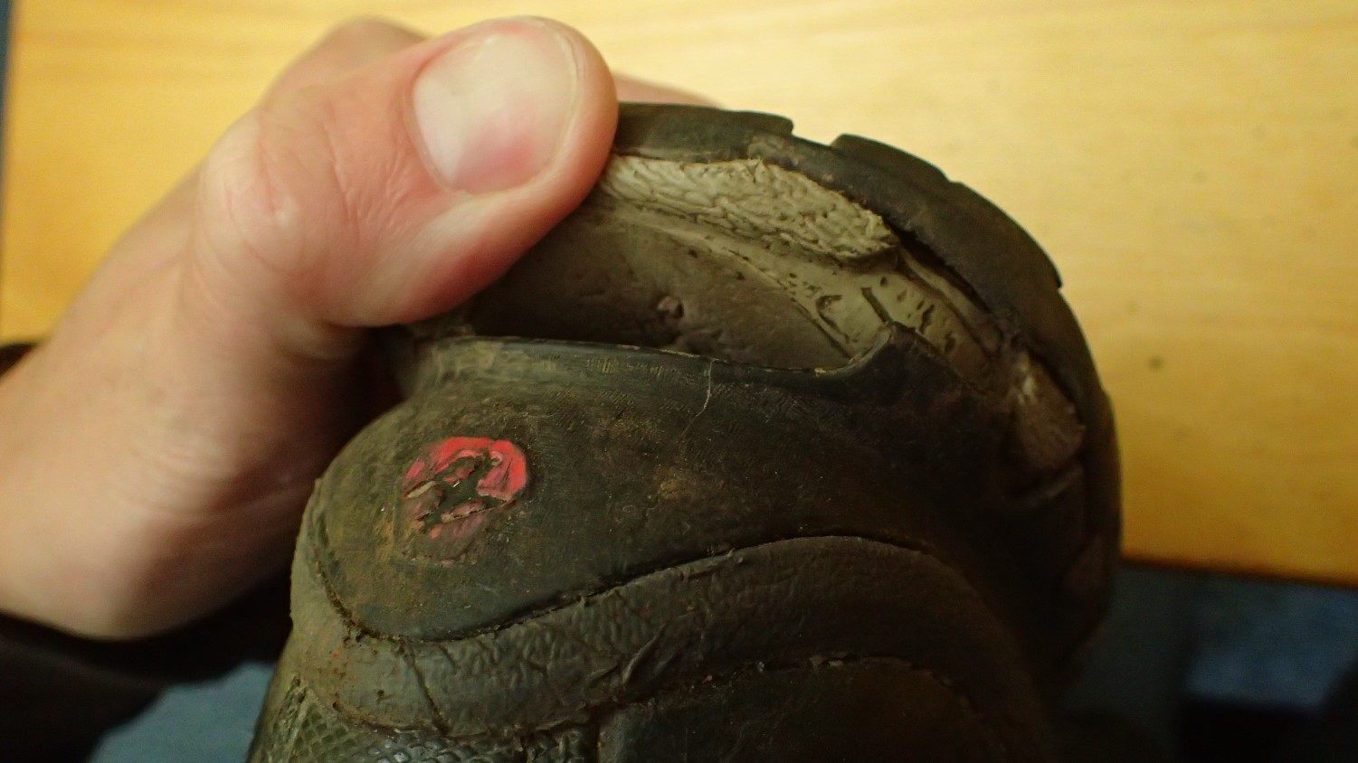 This was something I’d only become aware of whilst cleaning these boots. I’d like to state that I have never left them to dry in the sun or beside the heat source and that I have only stuffed balls of newspaper inside to remove the moisture while drying naturally.