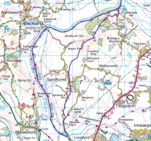 This was the first Severn Way marker I had seen since I left Sandhurst Road, thirty minutes in to my walk. Sadly, it has been tarnished by people who have felt an urge to write their own names.