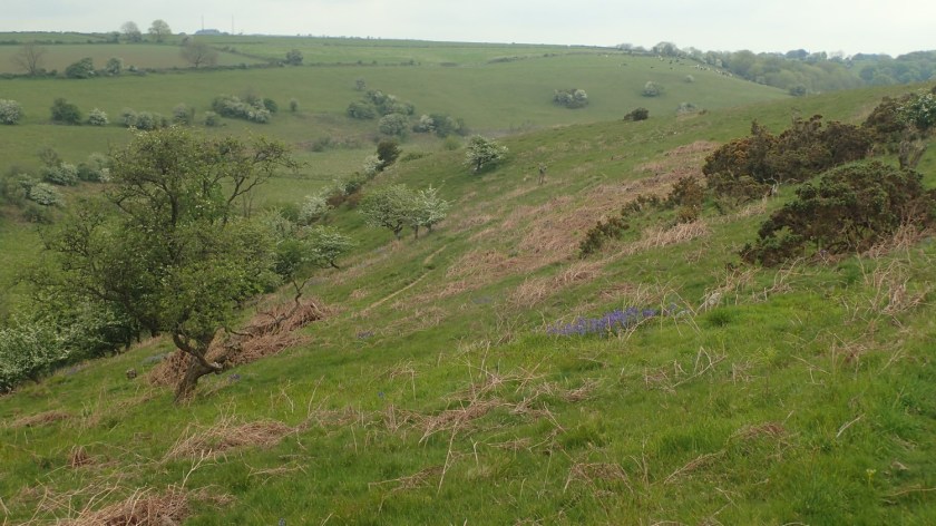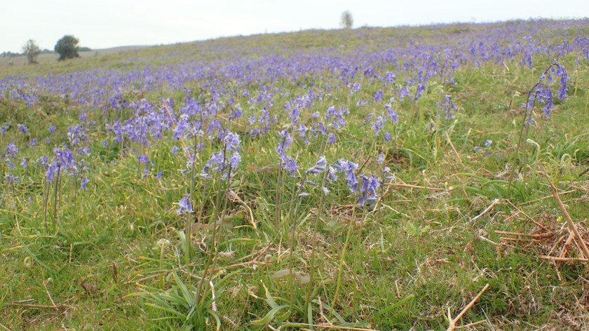 Having parked near the bottom of Burrington Combe, I hoisted my hefty rucksack up on to Black Down, where I was surprised and pleased to find bluebells still in bloom. From there I continue a little higher to Beacon Batch and the trig point, before heading down off the hill.