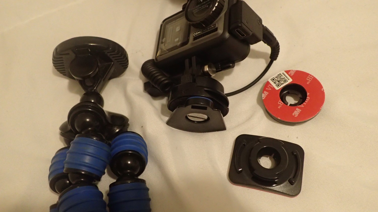 As standard, DJI supply this camera with two self-adhesive mounts. One has a flat base, the other is concave (to fit on helmets, I presume). I doubt I’ll use either of these but they do feature a quick-release function for removing the camera in a single twist and without having to touch the screw.