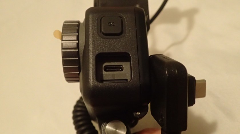 While the microphone plugs in to one hole, you can use the lower USB slot to either connect to a computer or charge the battery with a power bank. Accessing the camera’s USB slot does involve removing the door cover, which affects the waterproofness(?) of that area. In short: I won’t be using an external microphone in wet conditions.