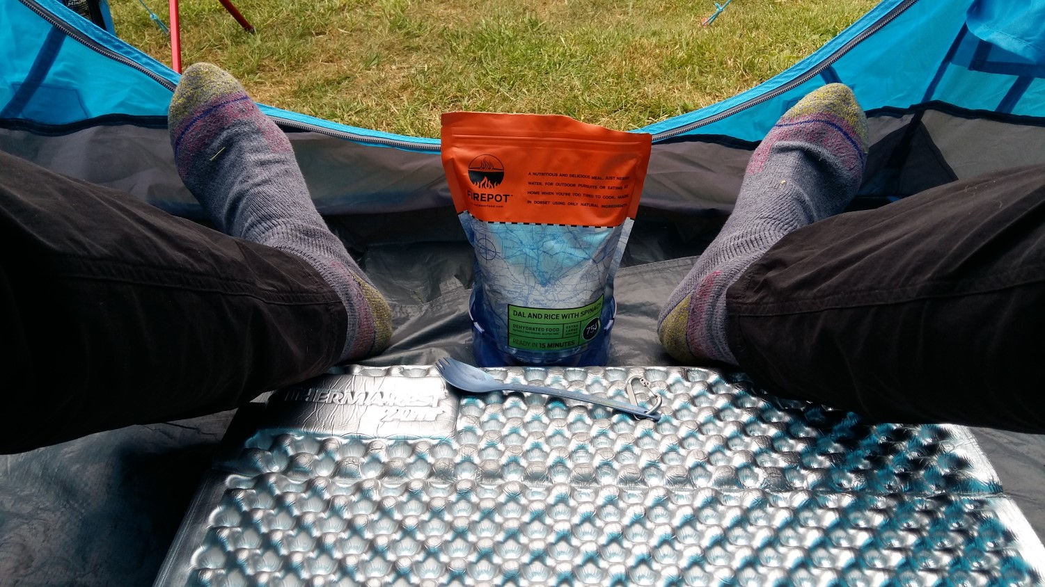 This £60 purchase was more or less the same size as my previous Vango “two man” tent – but with a larger porch area, meaning I could stash kit I didn’t want to sleep with and, have a separate space for sitting in and somewhere to fully escape the rain in between entering the tent, closing the door behind me and unzipping the sleeping compartment!