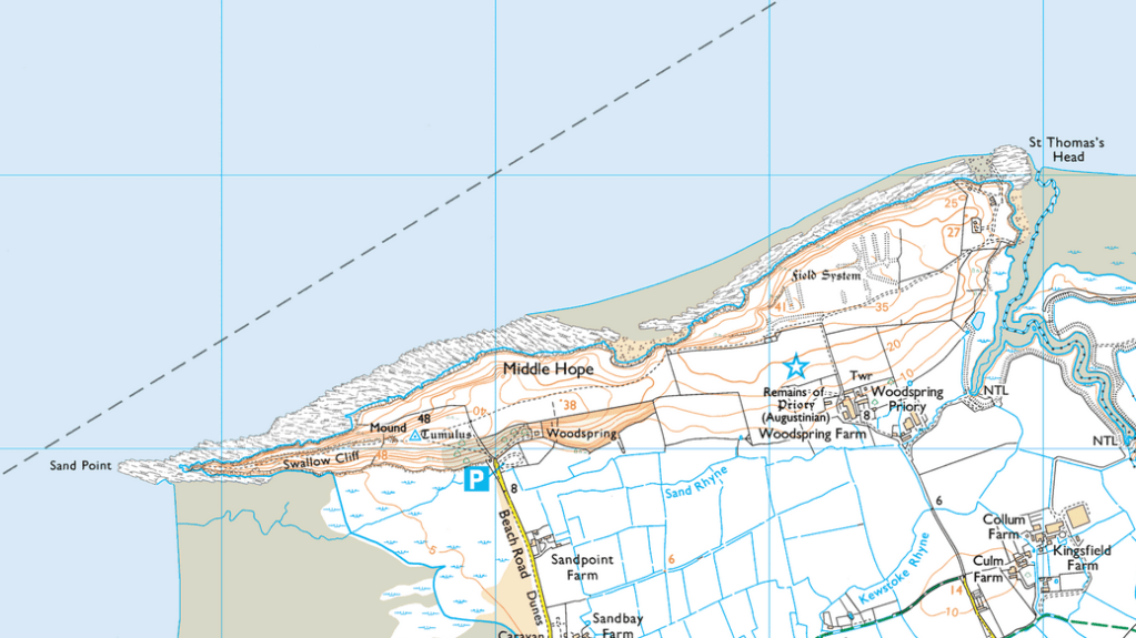 A short walk up the road and I’d reach the eastern end of Middle Hope, with its free car park, open 24/7. Woodspring Priory is currently closed to the public, as I’d read on a sign here the previous weekend. I wasn’t surprised to find the car park close to full at around 10am.