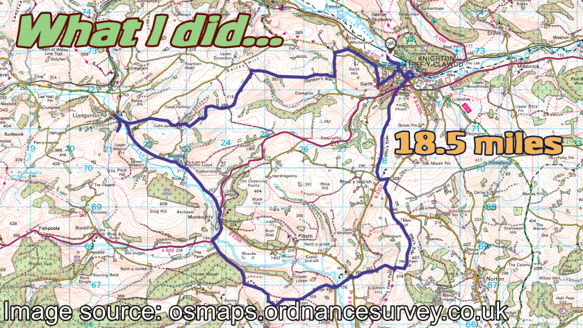 This was my final full day on the Shropshire/Wales border. I awoke in my tent, feeling ready for an eighteen-mile outing. Towards the end, I’d be following a few more miles of Offa’s Dyke Path. Initially, I’d be joining Glyndwr’s Way (another National Trail) from Knighton. In between the two, I’d have to connect the lines.