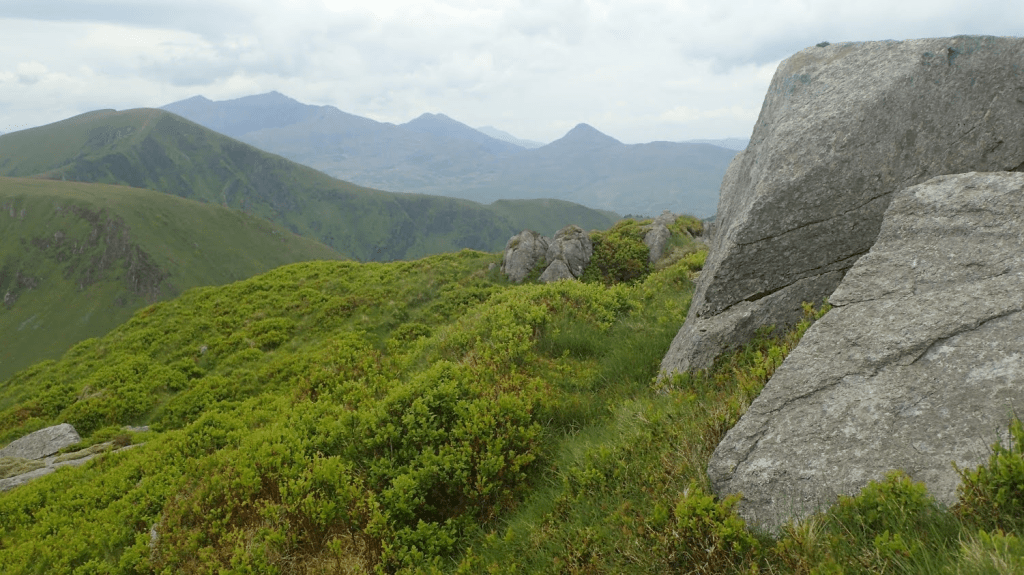 It was anything but an easy ascent – as with the beginning of any ridge walk; you have to first get up there! I paused frequently along the way, as the gradient seemed to increase and the lakes beneath me reduced in size.