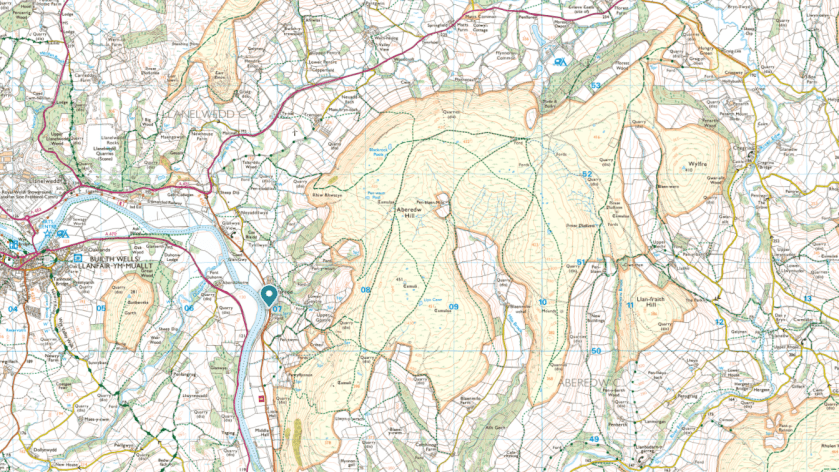 South-south-west of Gilwern Hill lies the market town of Builth Wells. Directly east of that and beyond two A-roads, you’ll find Aberedw Hill.