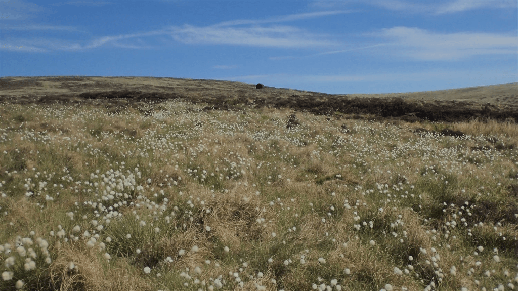 As you turn in and away from the water’s edge, the land is adorn with cottongrass. A near-certain sign of peat and many years of slow decay. Thoughts turn to putting a foot wrong and finding myself up in my armpits in a bog.