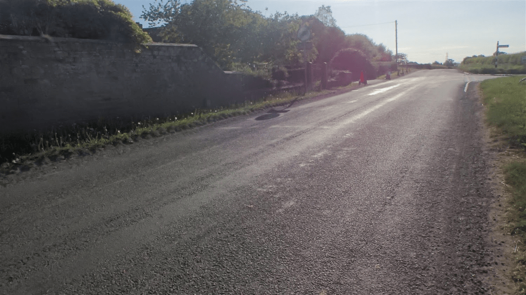 But there’s no public right of way running to the campsite entrance. From the train station, I joined a busy “link road” that crosses the railway line. No pavement, barely a grass verge in places and fast-moving traffic in both directions.
