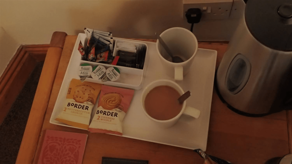 There are options to purchase an evening meal there, while I was somewhat content to tuck in to the sandwich and “sharer” bag of crisps I’d purchased in Aldi.